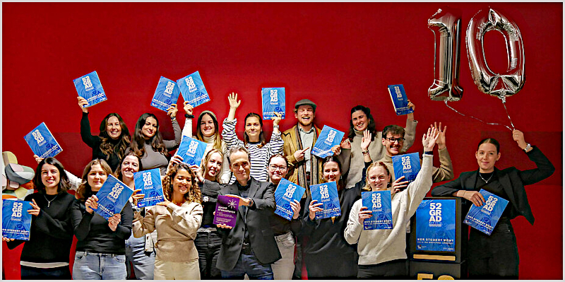 Die 52 GRAD ist als innovatives Lehr-Transfer-Projekt konzipiert. Das Besondere dabei: Die Studierenden übernehmen sämtliche Aufgaben selbst – von der Anzeigen-Akquisition über die redaktionelle Arbeit bis zum Editorial Design. Mehr als 330 Studierende haben bislang daran mitgearbeitet, viele davon mehrmals. Unterstützt werden sie von Professor Hofmann, dem Berliner Designer Markus Tiggemann sowie von Florian Zander, dem Pressereferenten der Detmolder Schule für Gestaltung.